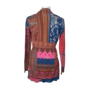 DESIGUAL Women Patchwork Open Front Sweater Sz S Multicolor Long Sleeve 32-13