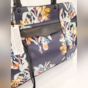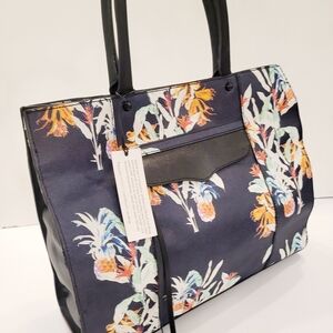 Elegant tote with vibrant floral Hawaiian print design. Spacious and stylish. Ideal for daily use. Double handles with an 8" Drop.
