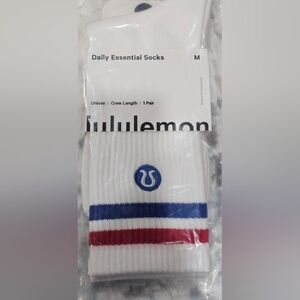 New! 1 pair of unisex medium Lululemon Daily Essential crew socks. Color way is Red/White/Blue. Color may vary due to camera lighting.