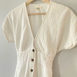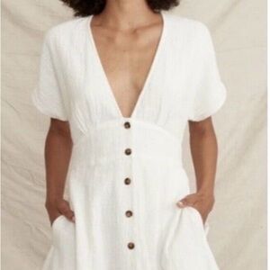 Marine Layer Camila Mini Dress in White Women's XS Gauzy Cotton Side Pockets