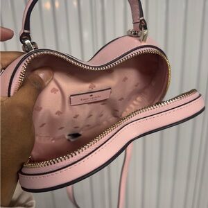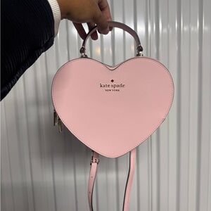 Chic and stylish, this Kate Spade heart-shaped crossbody bag is perfect for any occasion. The elegant pink color adds a touch of femininity to your outfit. Brand new, never used.