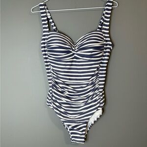 One Piece Nip Tuck Swimsuit Blue White Nautical Stripe Rouched Swim Suit Size 8