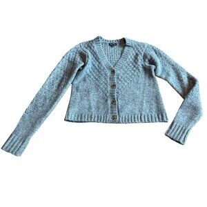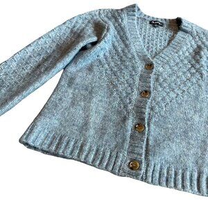 Flag & Anthem Blue Cardigan Sweater Button-Down Cable Knit Wool Blend Size Small