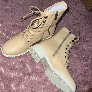 Elevate your style with these chic tan lace-up ankle combat boots. Perfect for any occasion, these boots offer both comfort and fashion.