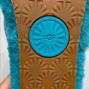 Luxurious and warm blue slippers by UGG. Ideal for home comfort.