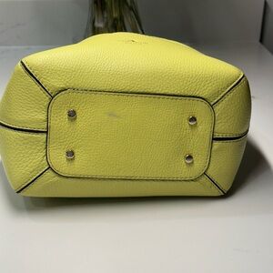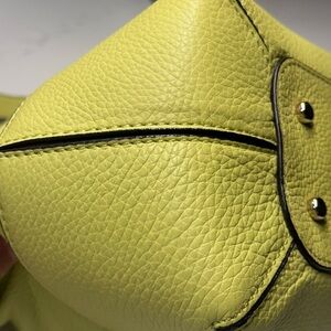 Vibrant leather shoulder bag with drawstring closure. Perfect for adding a pop of color.