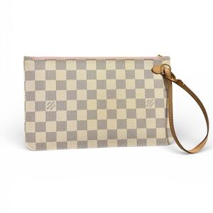 Louis Vuitton Damier Azur Checkered Neverfull Clutch Wristlet