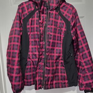 Polar Edge Women Nylon Fleece-lined Pink & Black Plaid Ski Jacket Size Medium