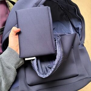 Sleek and versatile design. Durable material. Ideal for daily use. Please note: there is one flaw to this: a mark in the neoprene. It is not a rip, just indentations.