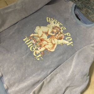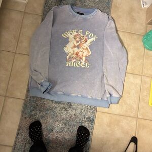 White Fox Boutique oversized Pastel Blue Angel Graphic Sweatshirt(NWOT)