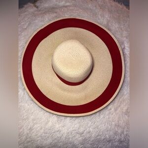 Lauren Ralph Lauren Elegant Red and Cream Wide Brim Hat 🍄