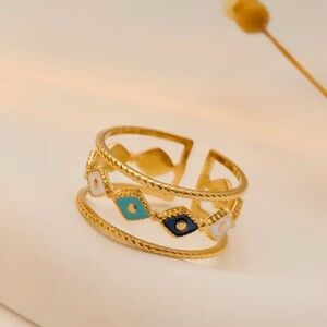 1pc Women'S Stainless Steel Adjustable Ring, French Jewelry Accessories, Elegant Hollowed Out Rhombus Enamel Open End Ring