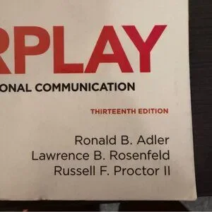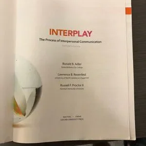 Oxford's Interplay focuses on interpersonal communication. Authored by Adler, Rosenfeld, and Proctor. Interplay The Process of Interpersonal Communication Thirteenth Edition Book paperback. May have marks, notes, highlights on pages. Bends nicks, wear on cover and binding. Good used condition.