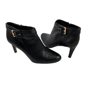 Vince Camuto Black Leather Ankle Boots with Gold Accent