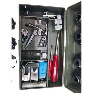 Enhance your sewing experience with this Vintage Wards Signature Sewing Machine Accessory Kit, featuring essential tools, cams, and feet for versatile projects. Ideal for collectors and sewing enthusiasts.