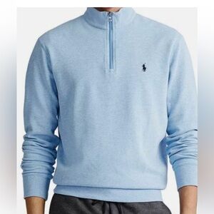 Elegant light blue zip-up sweater by Ralph Lauren. Features a classic design with a subtle logo detail. Perfect for layering.