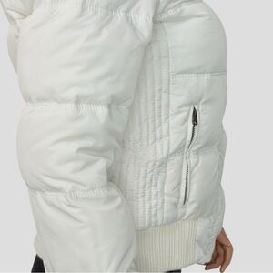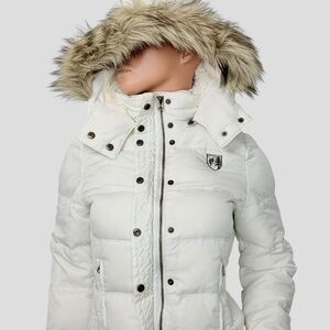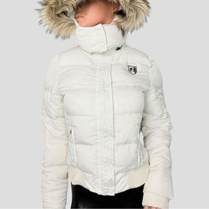 Vintage American Eagle Outfitters Down Feather Puffer Jacket M White Faux Fur Hood Y2K Snow Bunny 90s