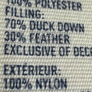 • Insulation: 70% Duck Down, 30% Feather