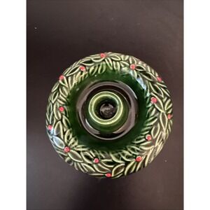 Vintage 90's PIER 1 Made in Italy Christmas Candle Holder Green Holly Porcelain