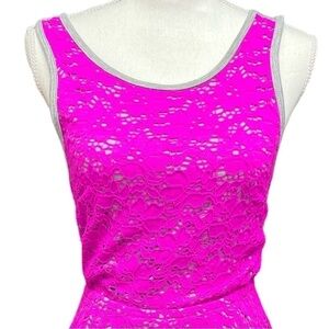 RINA TURK Pink Stretch Lace Gray knit Criss Cross back Fit & Flare Dress S NWOT Retailed at $168.