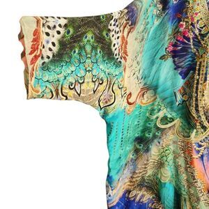 Camilla Dress O/S One Size Scoop Hem Freedom Flight Kaftan 100% Silk Crystal Emb