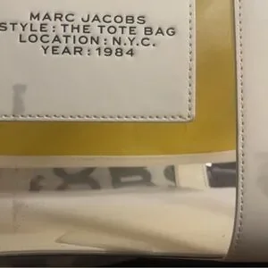 Chic Marc Jacobs tote with clear and yellow design. Ideal for stylish outings.