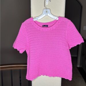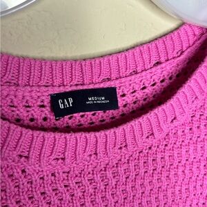 GAP Crochet Sweater Indie Pink Size M Colorful Beach Boho Valentine’s day