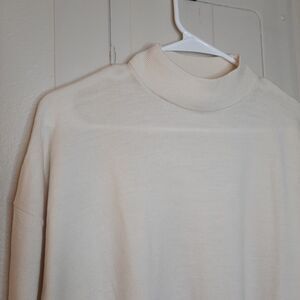 NEW Uniqlo Sweater Ivory Men Size XL Pure New Wool Mock Neck Lightweight LS