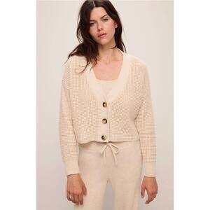 Eberjey Sweater Small Recycled Cardigan Oat Chunky Waffle Knit Cropped Cute Cozy