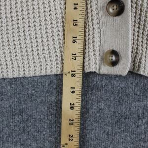 Pre-owned with gentle overall wear to the knit from normal use. Fabric clean and intact with no holes, snags, or stains. Buttons secure; interior pink brand label shows small hole and fraying at edge; no original retail tags.