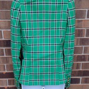 Smythe Kelly Green Plaid Puff Sleeve Blazer Cotton Size 6