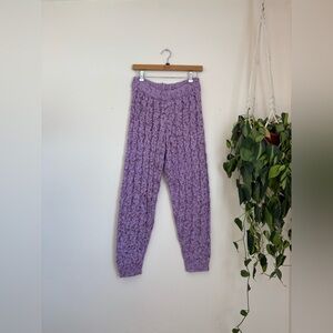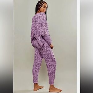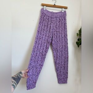 Free People Intimately Under The Mistletoe Joggers In Purple with a deeper shade or purple & blue speckles through out! Beautiful cable knit design with a slight open knit texture. Stretchy elastic wait band for comfort