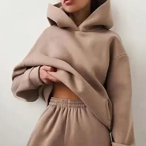 Comfortable tan hoodie and sweatpants set. Perfect for lounging. this is tan Grey sweats just for full pic