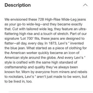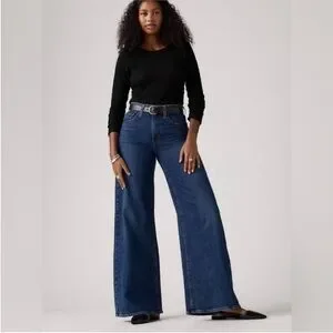 LEVIS Jeans Wide Leg NWT High Rise 728 Premium Woodstock Dark Wash Blue Size 27