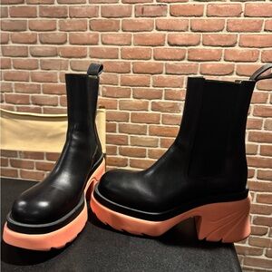 Bottega Veneta Black & Flamingo Flash Chelsea Boots