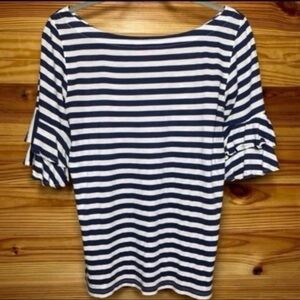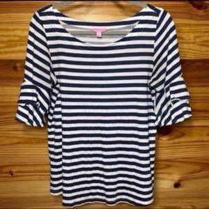Lilly pulitzer navy and white striped ruffle flair sleeve top medium