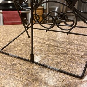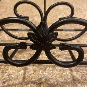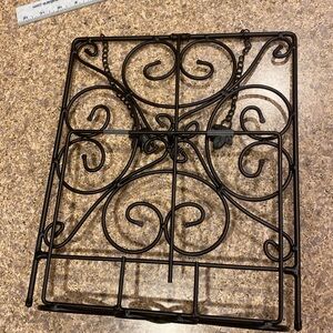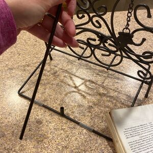 Longaberger Black Wrought Iron Cookbook Recipe Stand Collapsible Holder With Cute Maple Leaf Design. This looks so cute on your kitchen counter! Unfortunately, I don’t have the space to keep this on my counter. PLEASE NOTE- Cookbook in pictures is NOT included- The listing is for the Wrought Iron Stand ONLY. I only took pictures with a cookbook to show how it looks when being used as a cookbook stand. This is in good used condition showing some overall wear from use and it may have imperfections since it isn’t new, has age and has been used. Measurements are very approximate and colors may be off because of lighting. Bundle with other items from my closet and only pay 1 shipping fee up 5 lbs packaged.