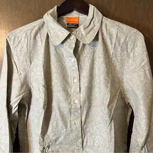 Merrell Cream Zanzibar Button Down Long Sleeve Top Floral Pattern Sz L NWT