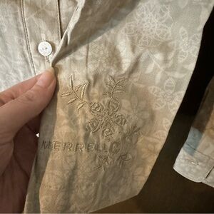 Merrell Women’s Cream White Zanzibar Cement Print Button Down Long Sleeve Top Floral Pattern Size Large.