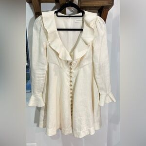 NWT Zimmermann Cream Linen Daisy Mini Dress Ruffle Long Sleeve AU 0P (US 2P)