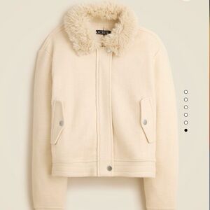 J.Crew Cream Wool Blend Flight Jacket Faux Fur Collar NWT