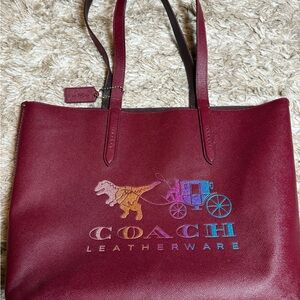Authentic Coach Burgundy Tote with Colorful Logo and matching wallet