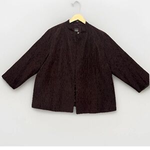 Gorgeous Eileen Fisher Jacket Women's 1X Plus Deep Purple Silk Open Front Embroidered Classic