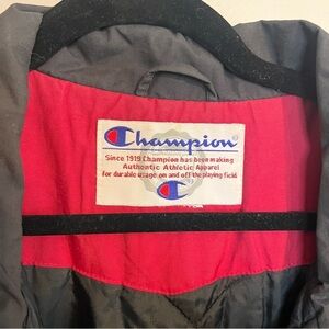 Vintage 90s Champion Black & Red Logo Bomber Jacket – Size XL : Excellent Condition