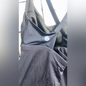 Black lululemon yeah yoga tank. Has criss-cross straps with mesh back. Straps are not adjustable. Has a built in bra with the option to put in padded inserts (sorry, doesn’t come with any). Can’t seem to find any size dot, but I know it’s a Size 2 from when I bought it at the lululemon store. Has a small snag in the mesh backing, shown in last photo. Hardly noticeable. Worn maybe once or twice. So besides the small snag, it’s in excellent condition.