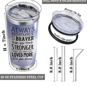 Always Remember You are Braver than You Think, Insulated Tumbler W/ 2 SS Straws!