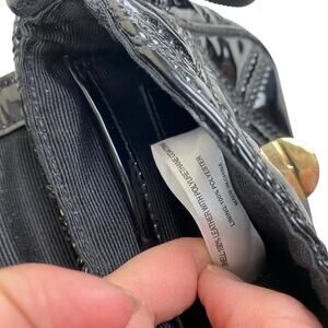 Talbots Black Quilted Leather Crossbody Bag Gold Chain Strap Bow Detail Patent FinishExcellent pre-owned condition.