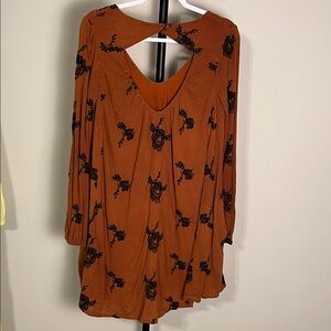 EUC FREE PEOPLE Emma Boho Swing Dress Floral Embroidered Long Sleeve Small