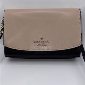 Kate Spade New York Staci Small Flap Crossbody Warm Beige Saffiano Leather. Adjustable Crossbody strap is removable to carry as a clutch.