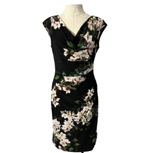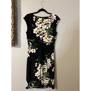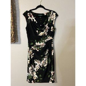 Ralph Lauren Dress 10 Black Pink Green Floral Washable Stretch Career Church